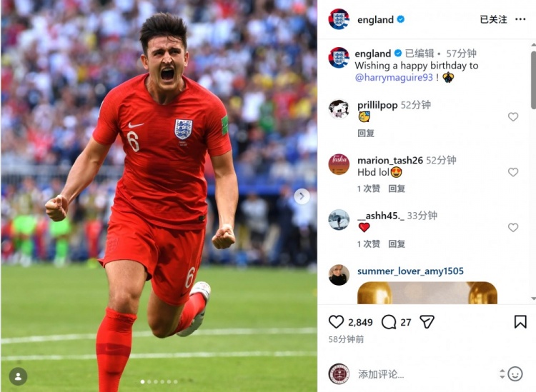 华体会APP-英格兰队祝马奎尔33岁生日快乐,球员为三狮军团出战64场7球2助