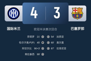 华体会体育-半场-国米暂2-0巴萨 劳塔罗破门+造点恰尔汗奥卢点射